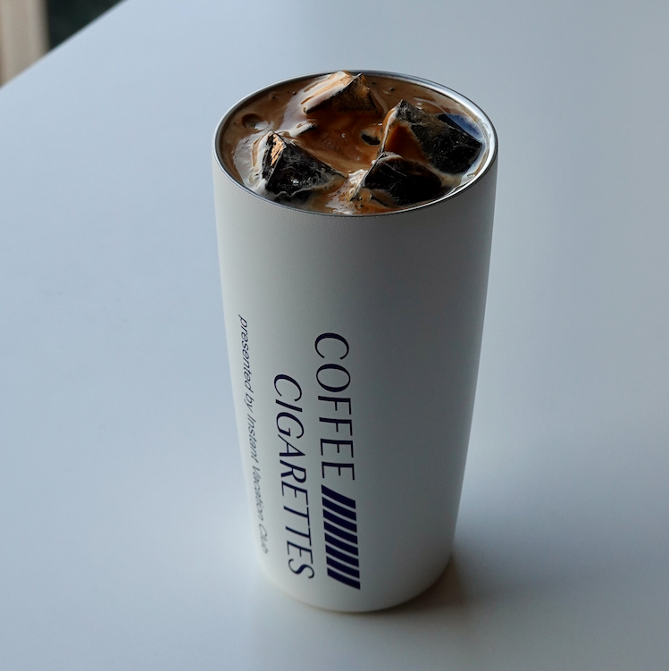 커피앤시가렛의 오리지널 로고가 짙은 블루 컬러로 인쇄된 MiiR 사의 텀블러입니다.